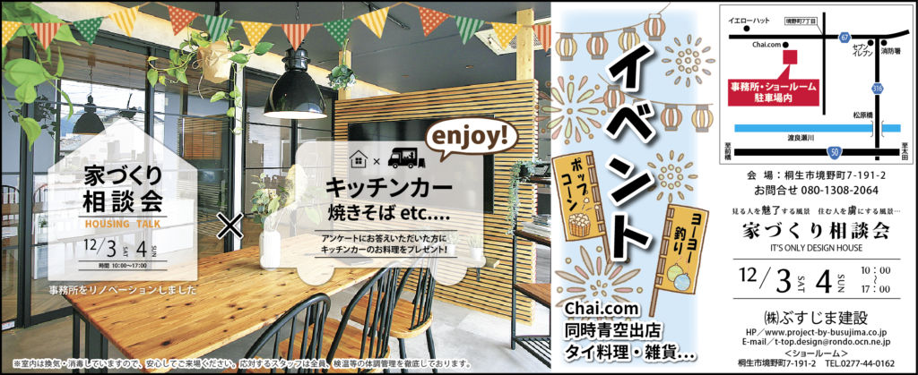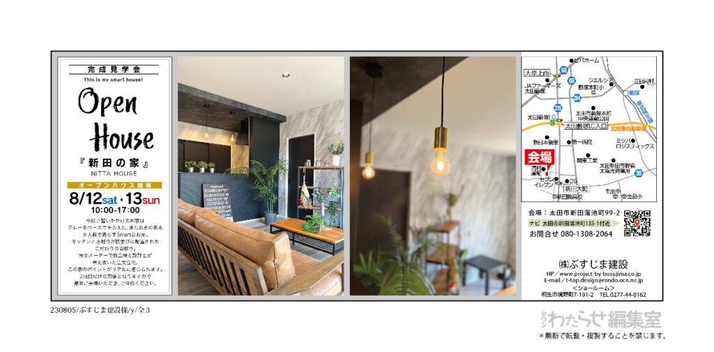 2023年8月12日(土)・13日(日)太田市新田にて完成見学会を行います。